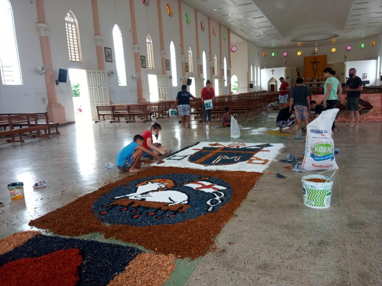Os tapetes nesse ano de 2022, foram feitos nas entradas das igrejas São José, pertecente a Paróquia de Nossa Senhora da Expctação e da Matriz de Nossa Senhora do Rosario, da Paróquia do Rosário.